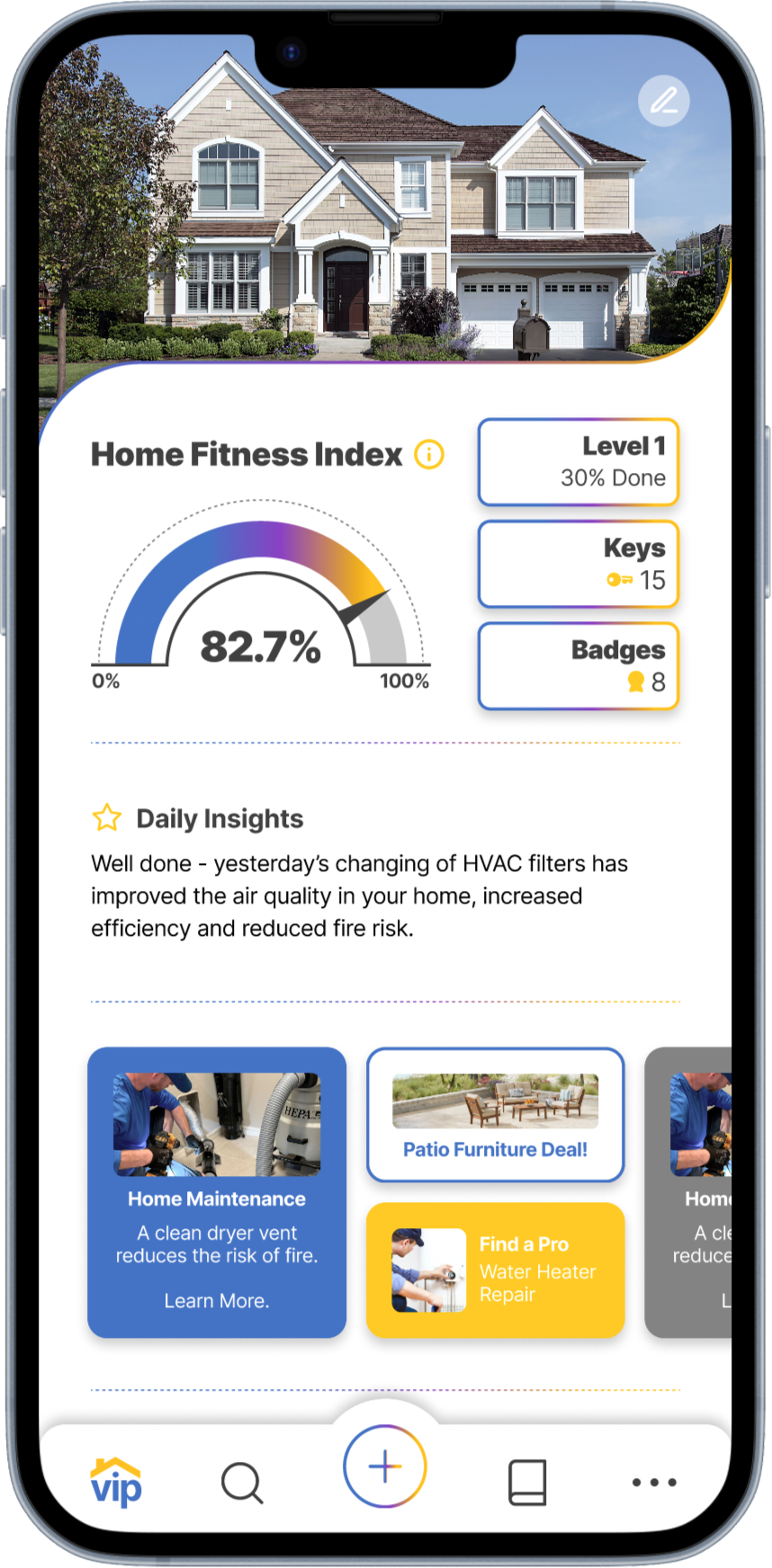 Powered by proprietary technology and analytics, the platform delivers a personalized, gamified Home Fitness Index™ that motivates action, along with tailored home insights, expert recommendations, and critical alerts. Through continuous engagement and timely guidance, vipHome.app supports policyholders throughout their entire homeownership journey — all from the palm of their hand.